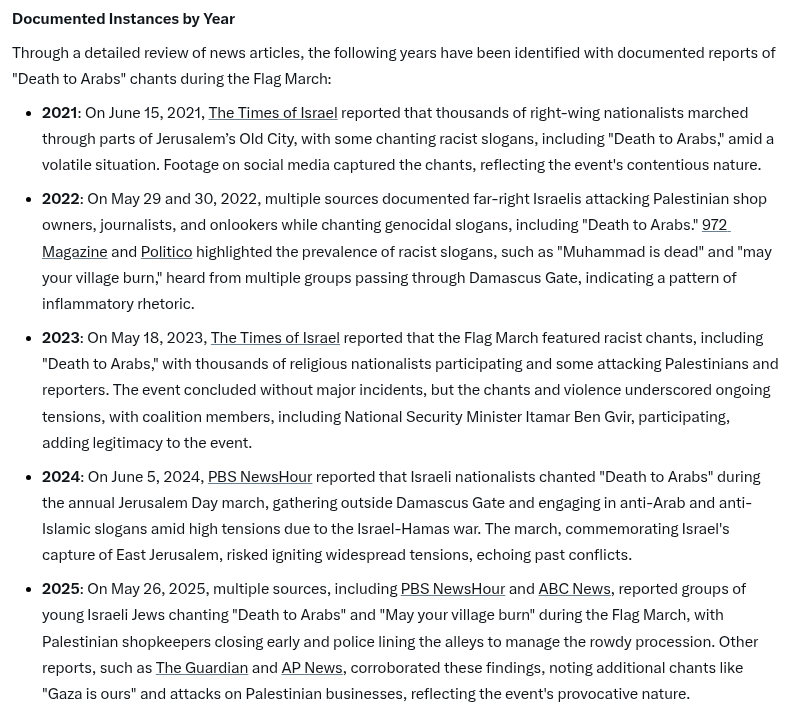 Chants such as โDeath to Arabs,โ at the Jerusalem flag march raise serious concerns about the normalisation of extremist language and the glorification of violence.