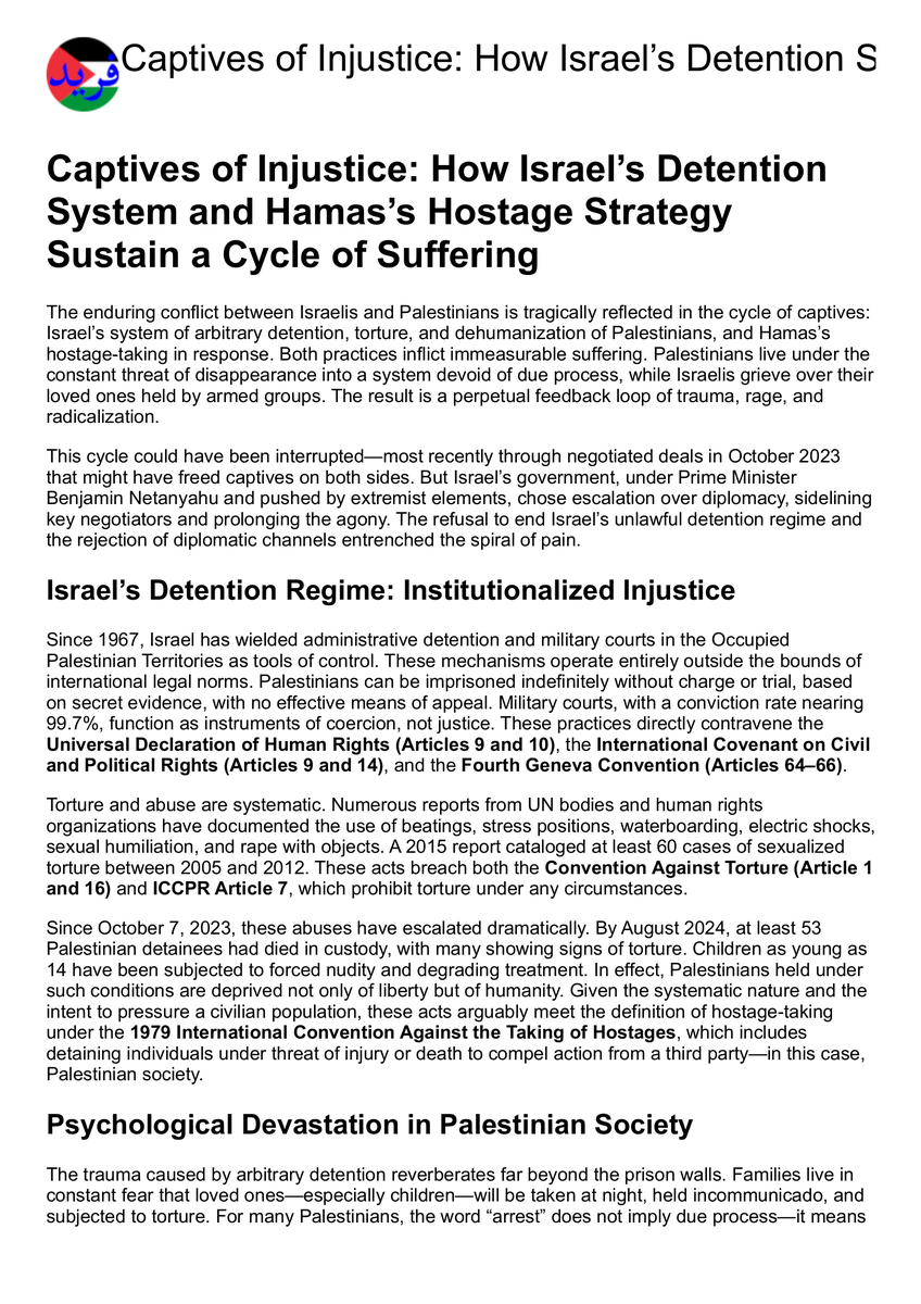 Captives of Injustice: How Israelโs Detention System and Hamasโs Hostage Strategy Sustain a Cycle of Suffering