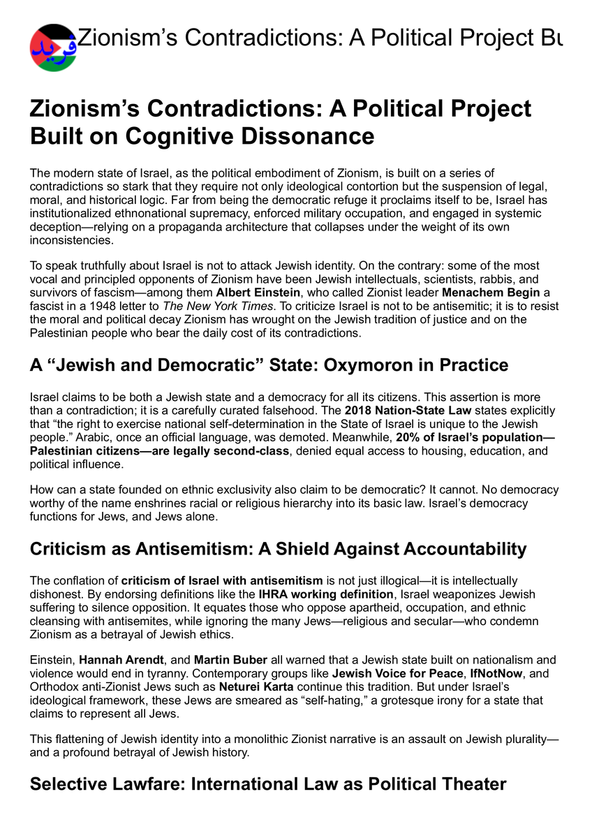 Zionismโs Contradictions: A Political Project Built on Cognitive Dissonance